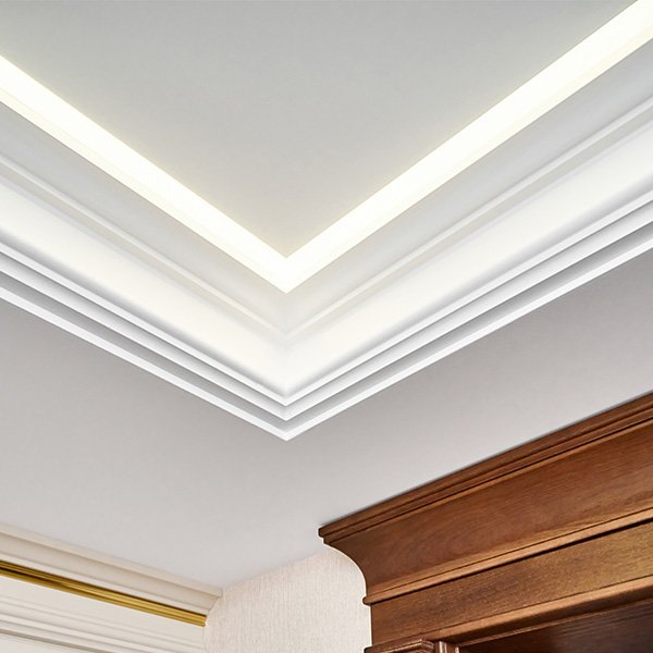 Na Gesso Punho Forte, instalamos molduras e rodatetos com cortes precisos — encaixe, alinhamento e arremate — elevando o padrão do ambiente com acabamento limpo, proporção correta e visual elegante.